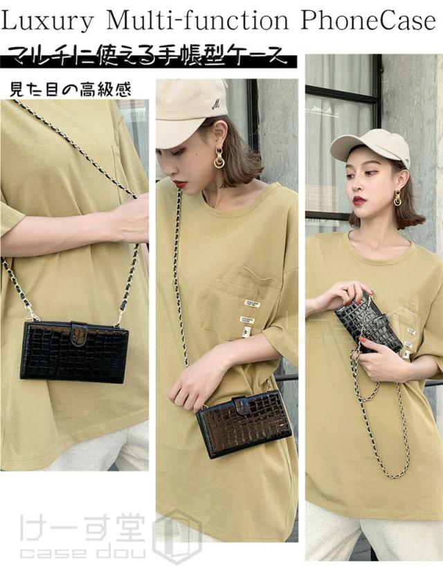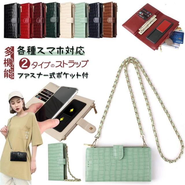 ほぼ全機種対応 マルチケース 多機種対応 マルチ対応 手帳 カード 収納 手帳型スマホケース マルチケース 大人女子 バック風 ジッパー ショルダータイプ レザー調 おしゃれ 小銭入れ かわいい スライド式でカメラ撮影可/2種類ストラップ付/ファスナー式ポケット付