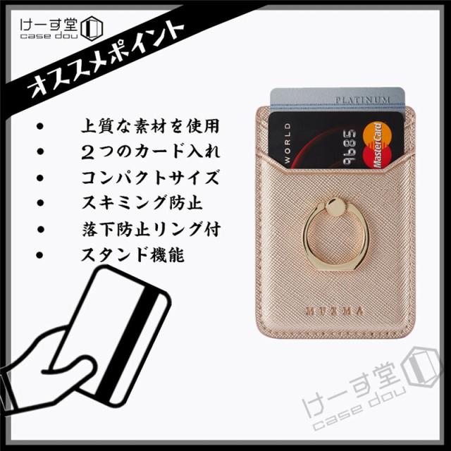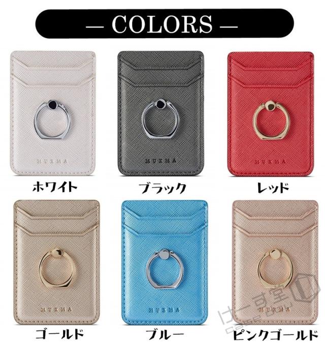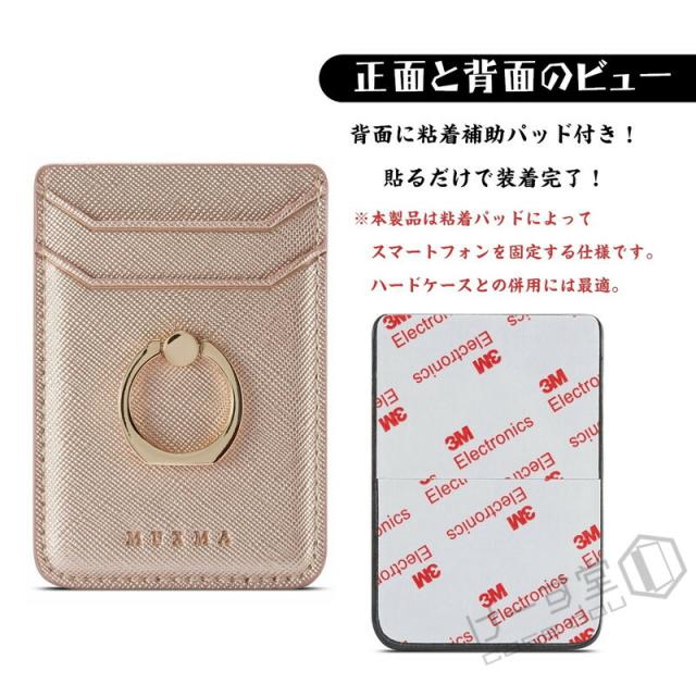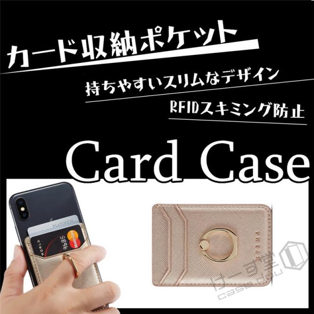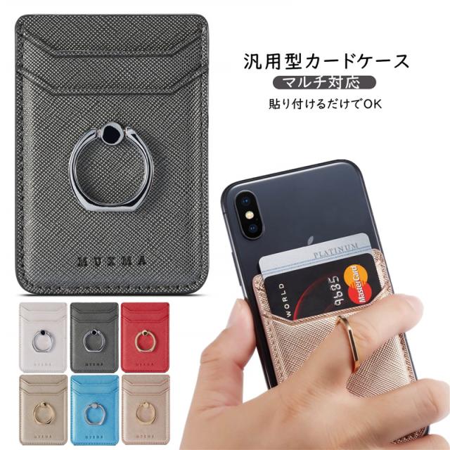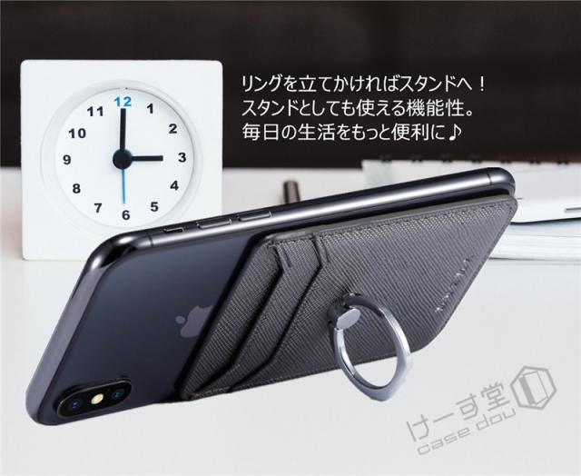 汎用型スマホ用カードケース スマホの背面に貼り付けるカードポケット 各種スマートフォン マルチ対応 カードケース RFID スキミング防止 軽量 スリム レザー huawei iPhone Xperia Galaxy AQUOS ARROWS カードケース 貼り付け シンプル リング付き スタンド機能 落下防止
