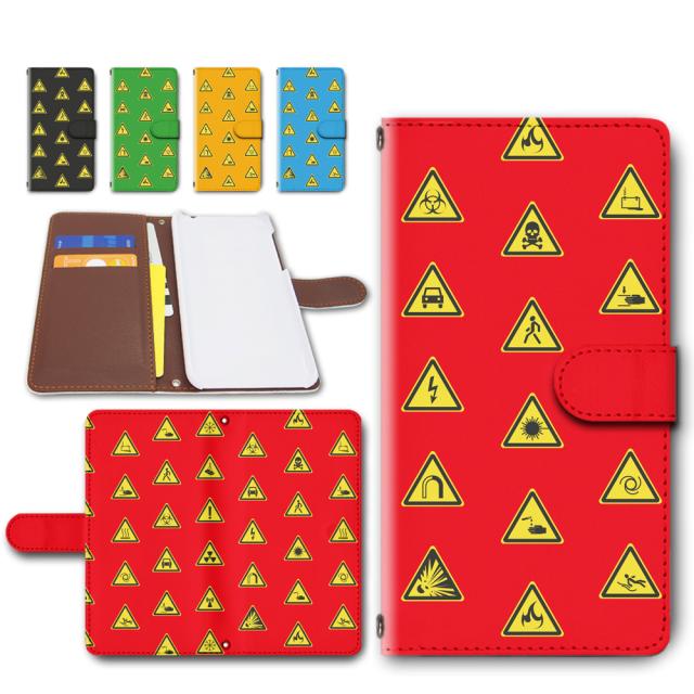 かんたんスマホ3 ケース 手帳型 カメラ穴搭載 エマージェンシー 標識 柄 三角 おしゃれ スマホケース A205KC 簡単スマホ3 かんたんすまほ3 手帳ケース 手帳 カバー