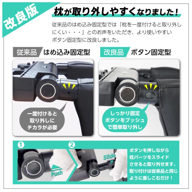| 【サイズ調整自由】 | 大人から子供まで快適に使用できるように上下左右ピローの角度・幅が調整が可能。 |