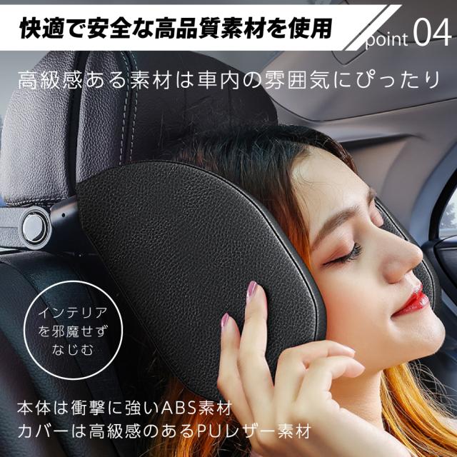 | 【高品質材質】 | ABS素材+PUレザー+高密度なストレッチコットンで、頭と首をしっかりサポートします。 高級感ある素材は車内の雰囲気にぴったりです。 |