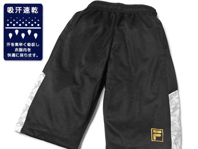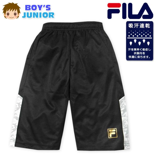 【送料無料】男児 ジュニア 吸汗速乾 ハーフパンツ FILA/フィラ ジャージ 通気性 箔ロゴプリント 迷彩 子供服 男の子 140cm 150cm 160cm iw-0886b-bk【メール便対応】