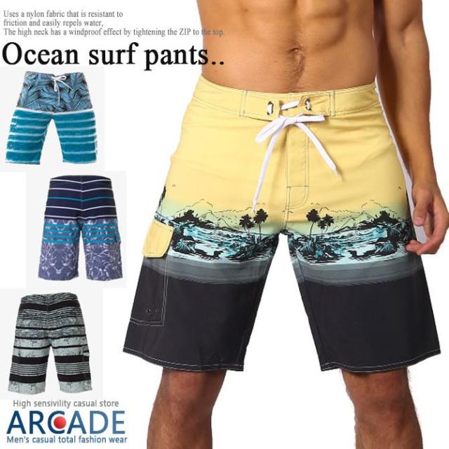 水着 メンズ 海水パンツ 水陸両用 ハーフパンツ ウエストゴム ボーダー柄 夏 新作 サーフショーツ サーフパンツ スイムショーツ 海パン