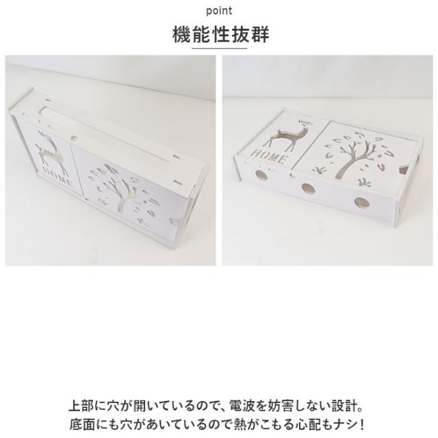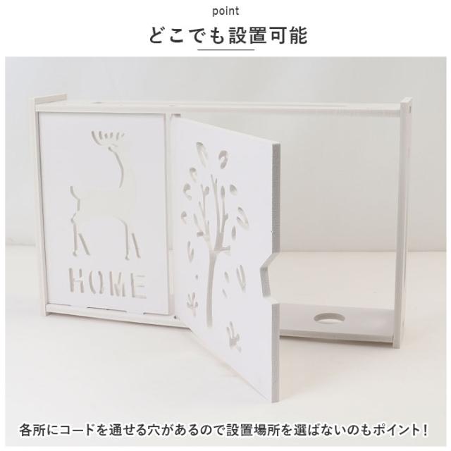| 商品説明 | ・ごちゃごちゃした配線の悩みを解決!壁掛け式ルーター収納ボックスが発売。 【スッキリ収納】 ・配線やタップ、ルーターをまとめて収納でき、小さなお子様やペットのいるご家庭も安心。 【取り付け簡単】 ・ネジで固定するだけなので組み立て簡単。壁掛け用に粘着フックとピンフック、2種類の固定フック付き。 【どこでも設置可能】 ・各所にコードを通せる穴があるので設置場所を選ばないのもポイント! 【機能性抜群】 ・上部に穴が開いているので、電波を妨害しない設計。底面にも穴があいているので熱がこもる心配もナシ! 【スマホスタンド付き】 ・可愛いキャラクター型の組み立て式スマホスタンドが付属。収納ケースの上に置いたり、机の上などで単独使用もOK! 【選べるデザイン】 ・インテリアに合わせやすい2種類のデザインでお部屋の中がスッキリ! |