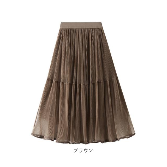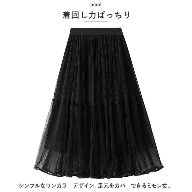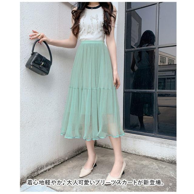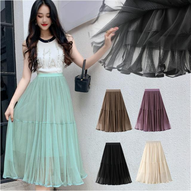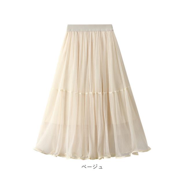 スカート プリーツスカート レディース 通販 プリーツ ロングスカート ミモレ フォーマル 透け感 裏地付き シースルー シフォン ふんわり 無地 切り替え 切替 キュート フェミニン カジュアル