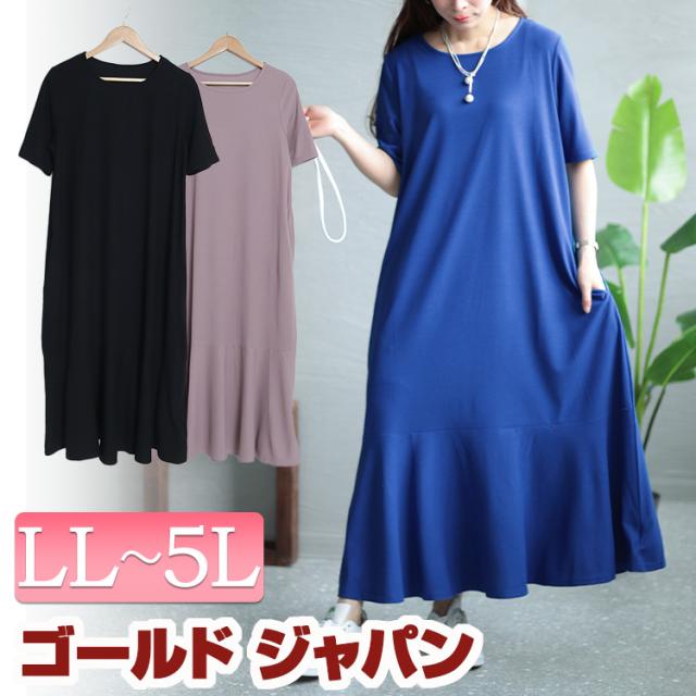 春新作 大きいサイズ レディース ワンピース ワッフルカットソーマーメイドワンピース 半袖ワンピース ワンピ ロング 半袖 5分袖 ストレッチ ワッフル カットソー マーメイド マタニティ 春服 夏服 LL 2L 3L 4L 5L ブラック 黒 モーブピンク ピンク ブルー ゴールドジャパン