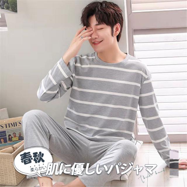 【水曜日まで!10%クーポン配布中】 パジャマ メンズ 長袖 セットアップ 上下セット 春 夏 秋 ルームウェア ナイトウェア トップス パンツ カジュアル 寝巻き シンプル ストライプ