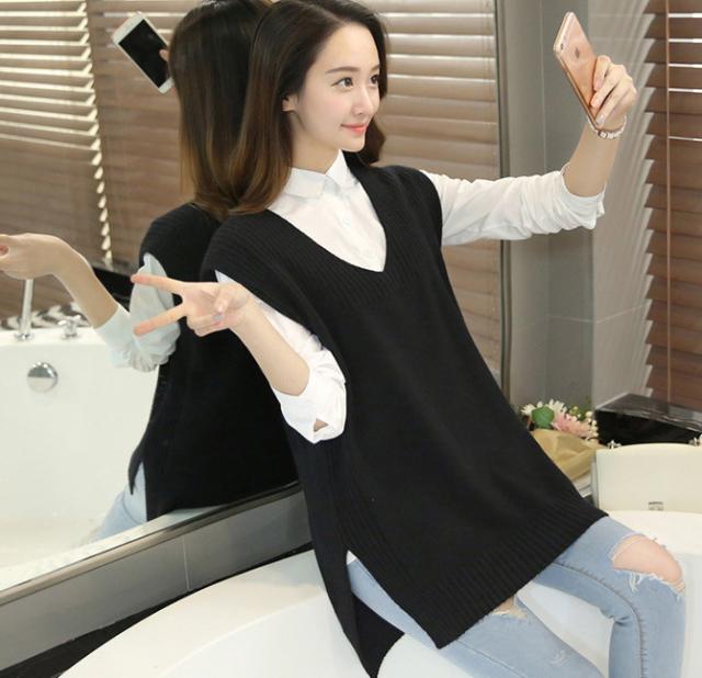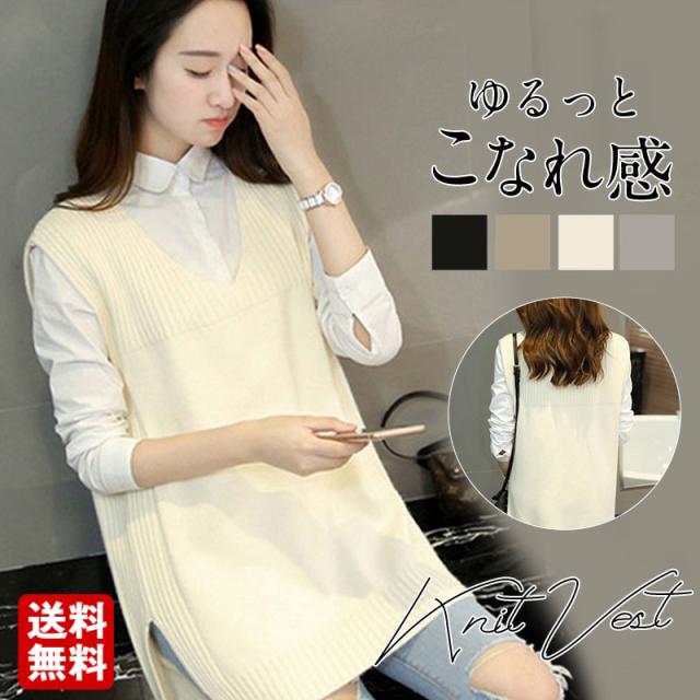 【水曜日まで!10%クーポン配布中】 ニットベスト レディース チョッキ トップス Vネック 秋服 リブ ゆったり プルオーバー ベスト ジレー セーター 無地 秋コーデ カジュアル 重ね着