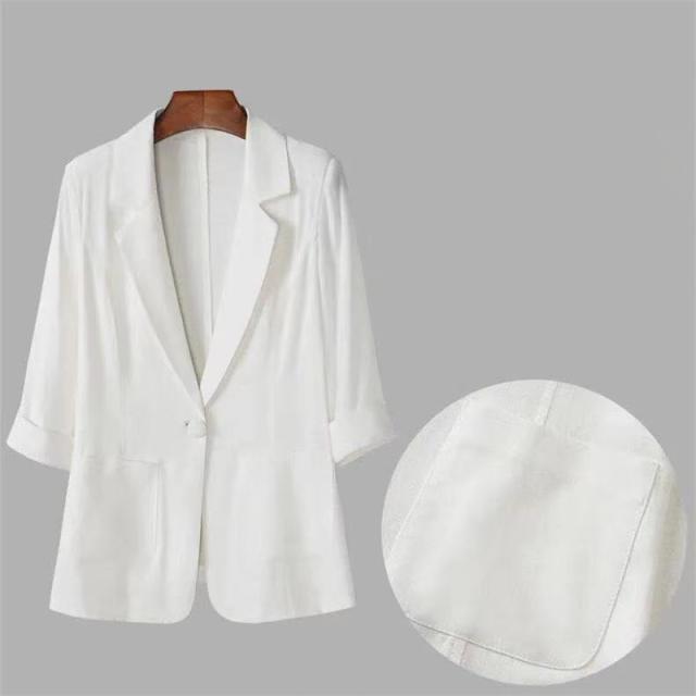 【水曜日まで!10%クーポン配布中】 テーラードジャケット レディース スーツジャケット リネン 夏 半袖 薄手 トップス サマージャケット カジュアルスーツ 通勤 涼しい 羽織り 春 秋 夏 生地