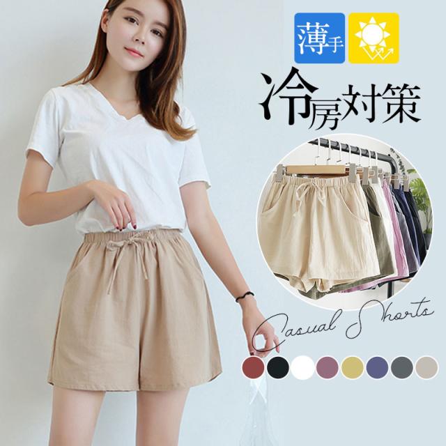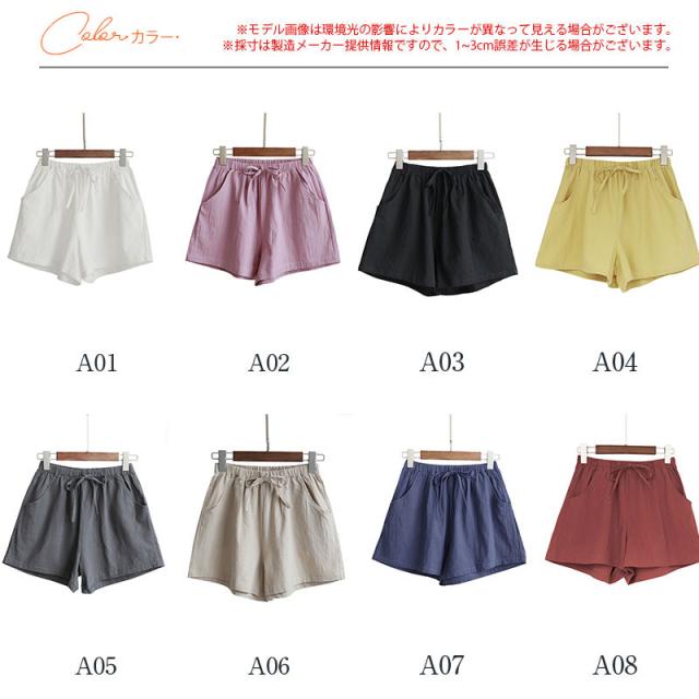 【~4/24まで P10倍+限定クーポン】 ショートパンツ カジュアル レディース 春 夏 秋 無地 リネン ルームウェア シンプル ハーフパンツ コットン ハイウエスト 20代 30代 夏用