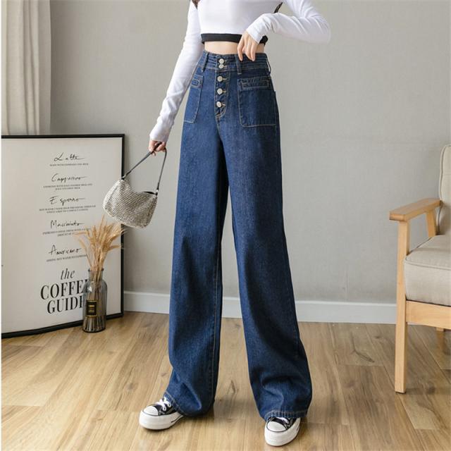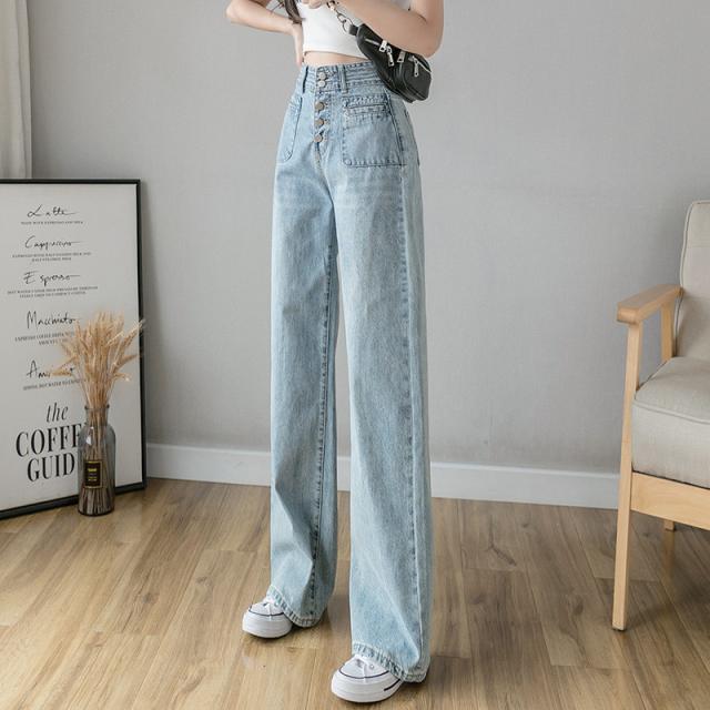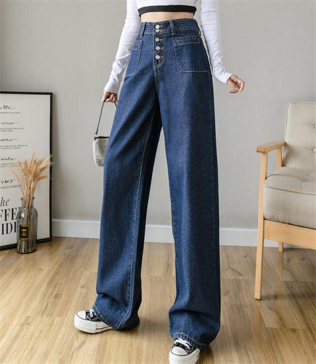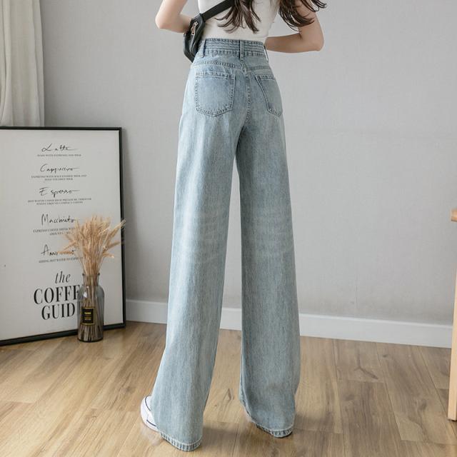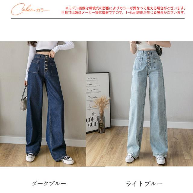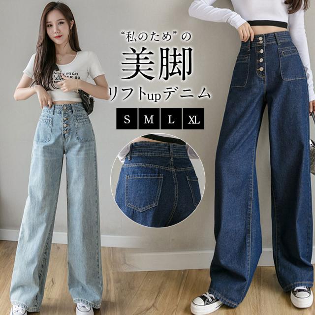 【水曜日まで!10%クーポン配布中】 デニムパンツ ワイドパンツ レディース ストレッチ ジーパン ジーンズ 伸縮 ジッパー ブリーチ ゆったり ボタン おしゃれ 20代 30代 春