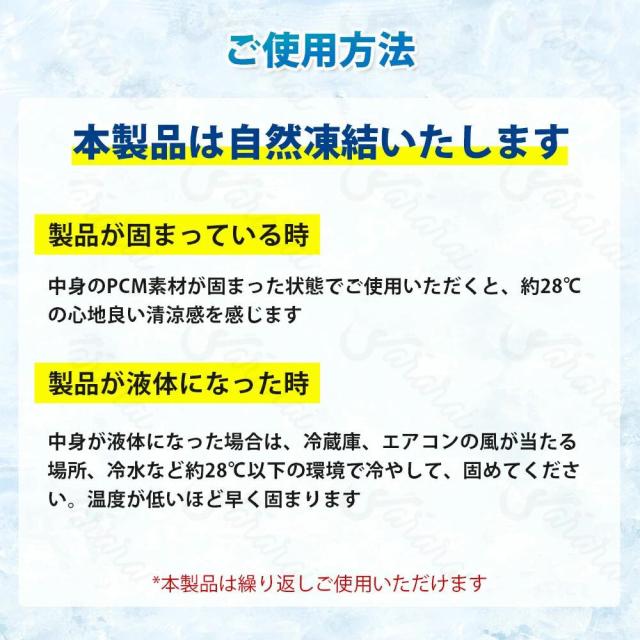 商品詳細:カラー:/画像通りサイズ:/約17*14.5cm■商品説明繰り返し使える28℃以下で自然冷却10分で固まる新素材\瞬間ひんやり/長時間キープ!最先端技術PCM素材PCM(Phase Change Material)とはアメリカ航空宇宙局NASAの宇宙飛行士を 急激な温度変化から守るために開発された新素材です。温度変化に左右されず、一定の温度を保つ性質があります。これが長時間ひんやりをキープの秘密。通常氷は0℃で溶け始めますが、マジッククールは融点が高く28℃で 溶け始めます。その為長時間冷たさをキープし冷やします。猛暑が予想される今年の夏 熱中症対策を!熱中対策には、首まわりから首の付け根には大きくて太い血管があります。大きくて太い血管の近くを冷やせば、効率的にカラダを冷やすことができ流れる血液を冷やし、発汗作用を促して体温調整の働きを正常に保つことができます。※チューブの中で一部色素の沈殿物が残る場合がございますが、使用には影響はございませんので、ご安心してください。■素材 外側:TPU、内容物:PCM■注意事項※イメージ違い・サイズ感での御返品にはお応え出来ません。
