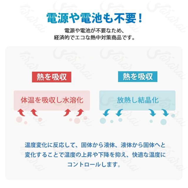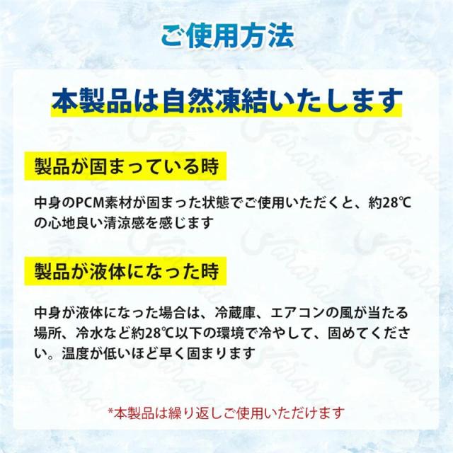 商品詳細:カラー:/スカイブルー/ピンクサイズ:/約17*14.5cm■商品説明繰り返し使える28℃以下で自然冷却10分で固まる新素材\瞬間ひんやり/長時間キープ!最先端技術PCM素材PCM(Phase Change Material)とはアメリカ航空宇宙局NASAの宇宙飛行士を 急激な温度変化から守るために開発された新素材です。温度変化に左右されず、一定の温度を保つ性質があります。これが長時間ひんやりをキープの秘密。通常氷は0℃で溶け始めますが、マジッククールは融点が高く28℃で 溶け始めます。その為長時間冷たさをキープし冷やします。猛暑が予想される今年の夏 熱中症対策を!熱中対策には、首まわりから首の付け根には大きくて太い血管があります。大きくて太い血管の近くを冷やせば、効率的にカラダを冷やすことができ流れる血液を冷やし、発汗作用を促して体温調整の働きを正常に保つことができます。■素材PVC、PCM■注意事項※イメージ違い・サイズ感での御返品にはお応え出来ません。