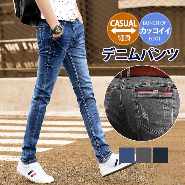 【水曜日まで!10%クーポン配布中】 デニムパンツ スキニー メンズ ストレッチパンツ ジーンズ 花柄 シルエット ジーパン スキニーデニム スリム ポケット付き ボトムス カーゴパンツ