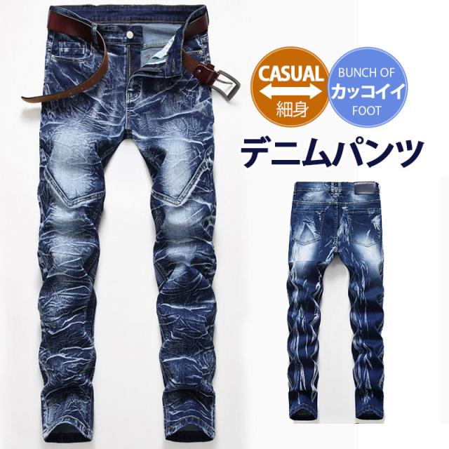 【水曜日まで!10%クーポン配布中】 デニムパンツ スキニー メンズ ストレッチパンツ ジーンズ ヴィンテージ加工 ジーパン ブリーチ スリムパンツ ユーズド感 バイク カーゴパンツ