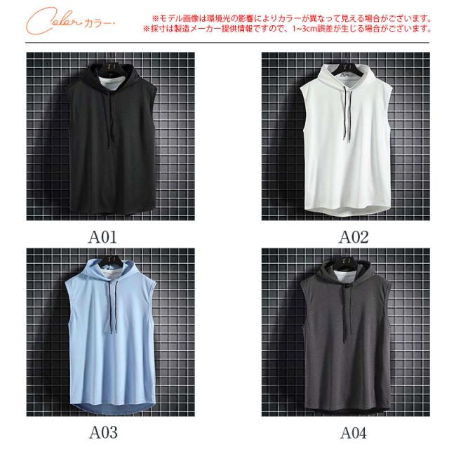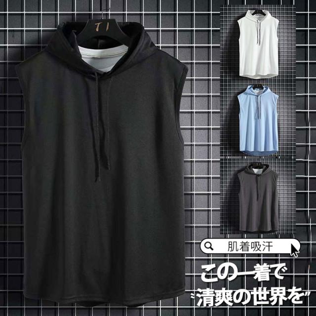 【~4/20まで P2倍+限定クーポン】 タンクトップ メンズ パーカー インナー トップス ベスト ノースリーブ 薄手 夏スポーツ フード付き ジム サマーウェア ひんやり 父の日
