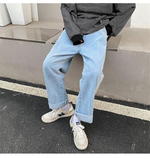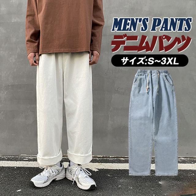 【~4/20まで P2倍+限定クーポン】 デニムパンツ ワイドパンツ メンズ デニム ブリーチ ジーパン ジーンズ ストレート ユーズド感 ブリーチ ゆったり プレゼント ロングパンツ 長ズボン B系