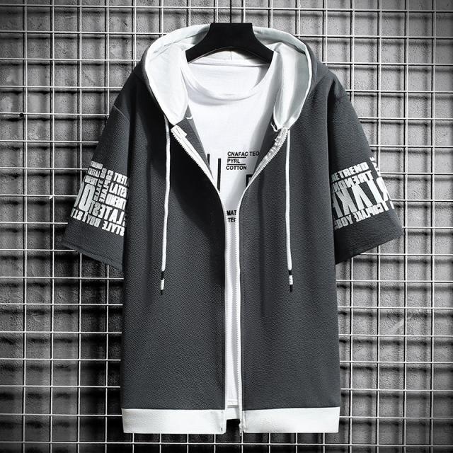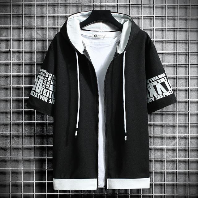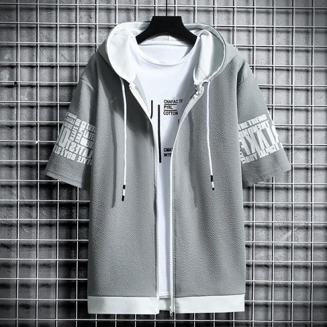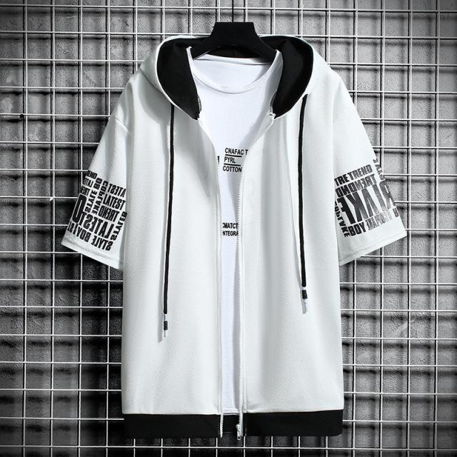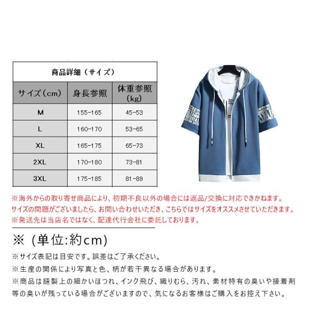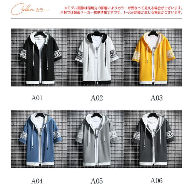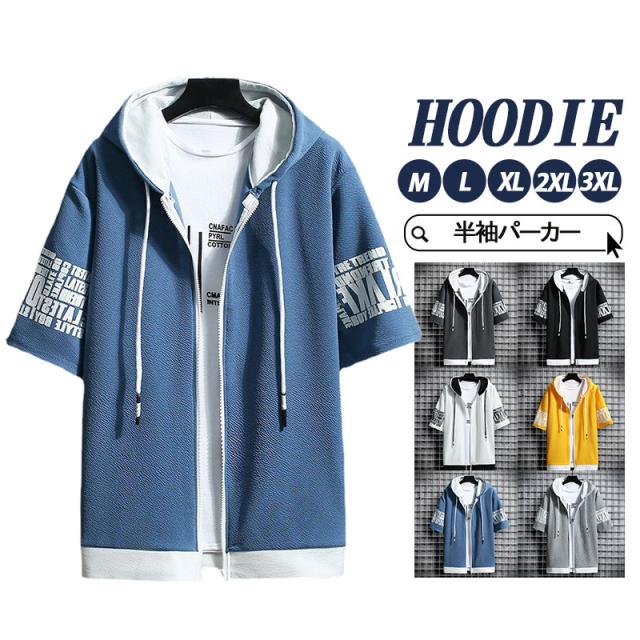 【水曜日まで!10%クーポン配布中】 半袖 パーカー メンズ ジップアップ 夏服 フード付き 文字 五分袖 涼しい トップス 英文字 ひんやり カジュアル プール ストリート アウトドア