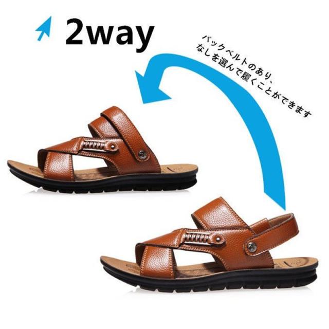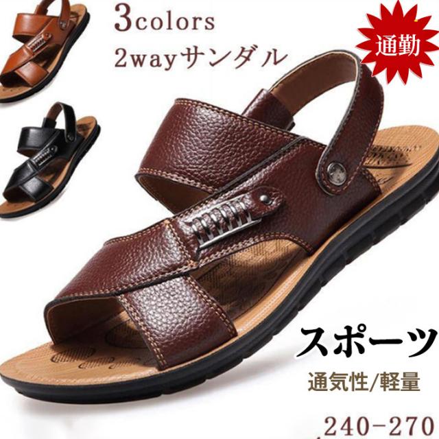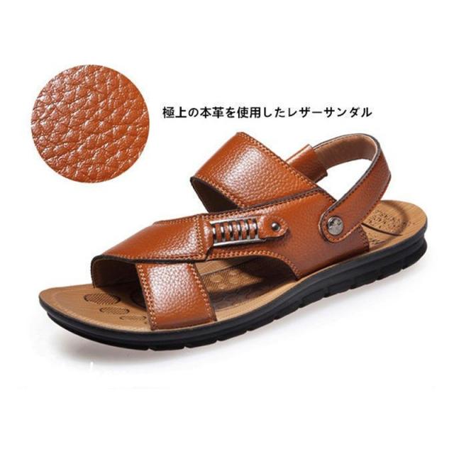 【~4/20まで P2倍+限定クーポン】 スポーツ サンダル メンズ 通気性 本革 レザー シューズ お得 滑り止め カジュアル 無地 軽量 旅行 釣り ビーチ 紳士用 夏 父の日 お父さん