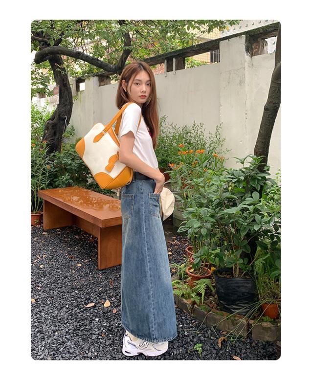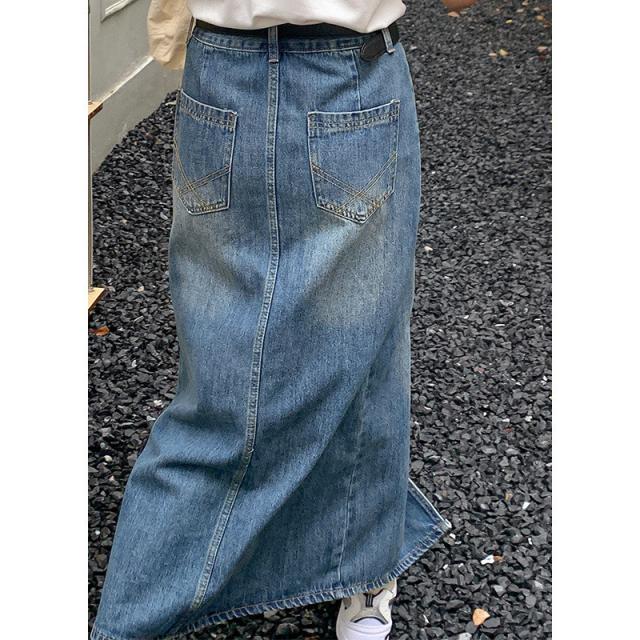 【水曜日まで!10%クーポン配布中】 デニム スカート レディース ロング ヴィンテージ加工 マキシスカート 大人向け 着痩せ 可愛い ゆったり 大きいサイズ Aライン 膝丈 フレア 冬