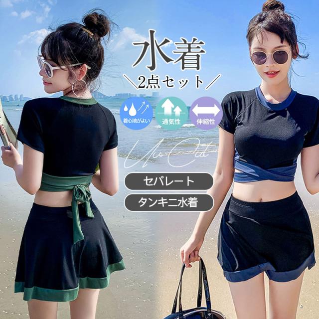 【水曜日まで!10%クーポン配布中】 水着 レディース セット ビキニ スカート セパレート フリル ビスチェ タンキニ水着 体型カバー ビーチ プール ジム運動用 2フィットネス スポーツ