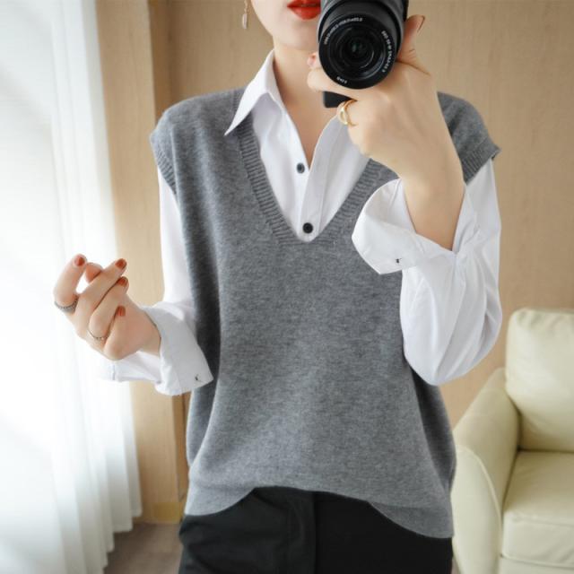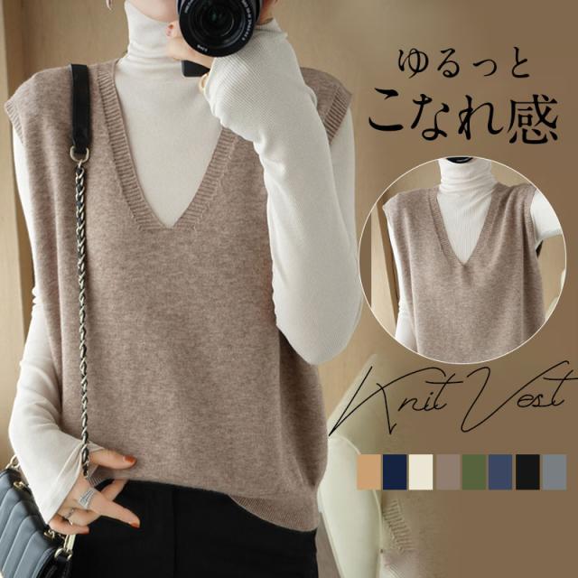 【水曜日まで!10%クーポン配布中】 ニットベスト ベスト レディース チョッキ トップス ノースリーブ プルオーバー ゆったり Vネック ジレー セーター 薄手 秋コーデ カジュアル 着痩せ