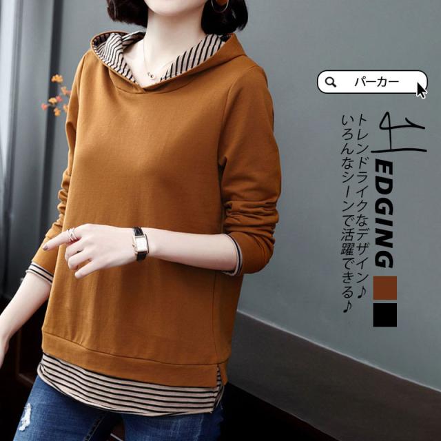 【水曜日まで!10%クーポン配布中】 パーカー プルオーバー レディース プルオーバーパーカー 長袖 ジャージー フード付き ゆったり スウェット 重ね着 着痩せ スポーツ 無地 運動 秋冬