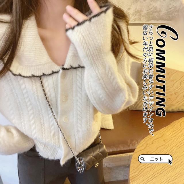 【~4/24まで P10倍+限定クーポン】 ニットカーディガン レディース カーディガン ショート丈 セーター 秋冬 前開き アウター ニット 羽織り 可愛い 体型カバー 防寒 韓国風 薄手