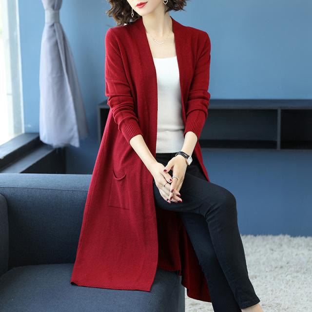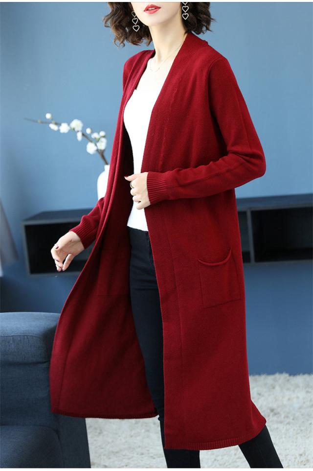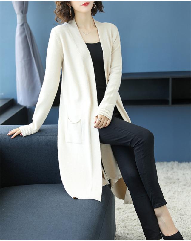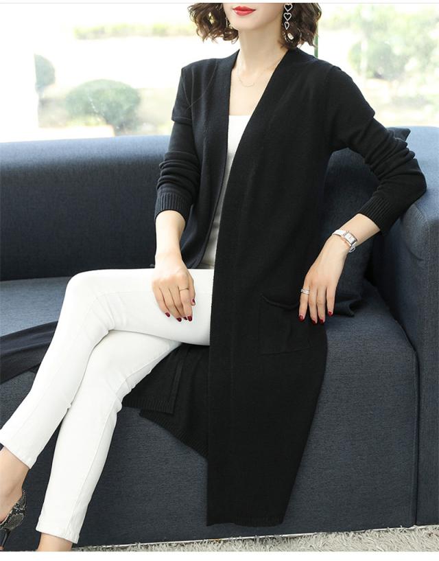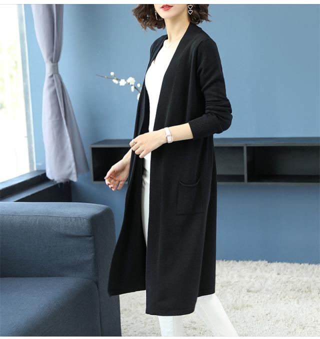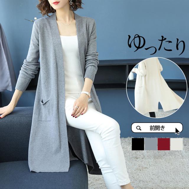 【水曜日まで!10%クーポン配布中】 カーディガン レディース ニットセーター ニットカーディガン ロング 長袖 無地 秋冬春 羽織り 膝丈 ベーシック カジュアル ゆったり 前開き コート