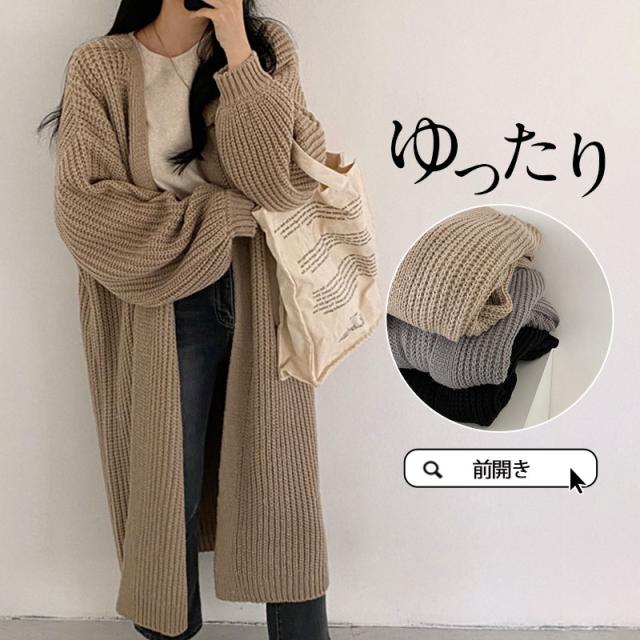 【水曜日まで!10%クーポン配布中】 カーディガン レディース ニットセーター ニットカーディガン ロング 長袖 リブ 秋冬春 羽織り シンプル ベーシック カジュアル ゆったり 前開き コート