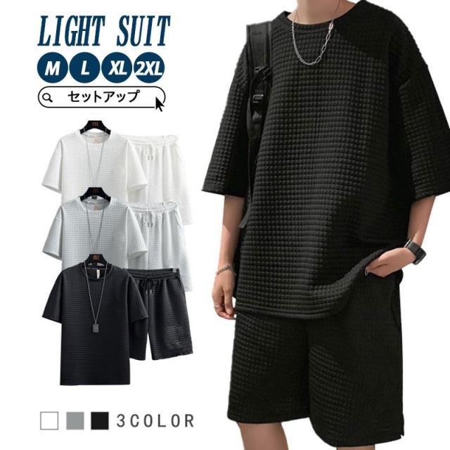 【水曜日まで!10%クーポン配布中】 セットアップ 上下セット メンズ 夏服 半袖 ハーフパンツ カジュアル カッコイイ 薄手 ゆったり サマー 肌触り 普段着 部屋着 通学