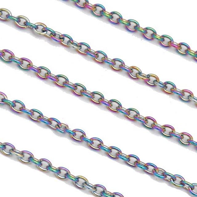 [1.2mm 1.5mm 2.0mm 2.5mm] レインボーオーバルステンレスチェーン/10cm単位 あずきチェーン 小豆チェーン 形 アズキチェーン 手作り DIY ネックレス ブレスレット アンクレット パーツ チョーカー メンズ レディース 鎖 楕円形 クサリ 定番 虹色 細い だ円形 マルチカラー