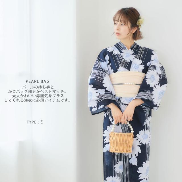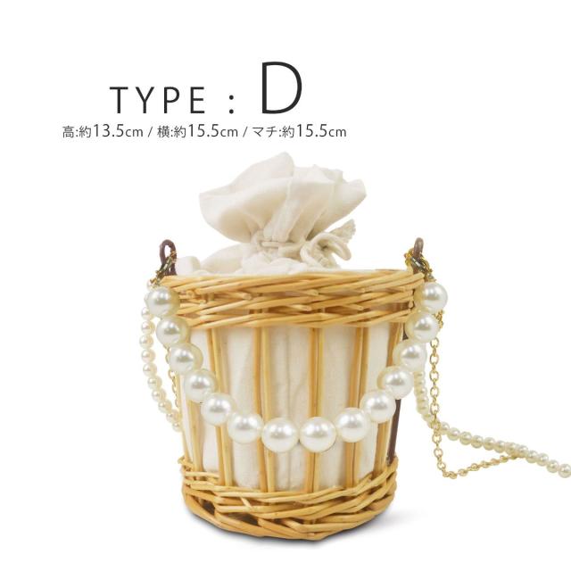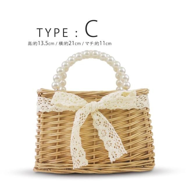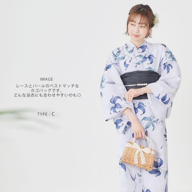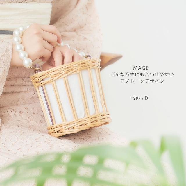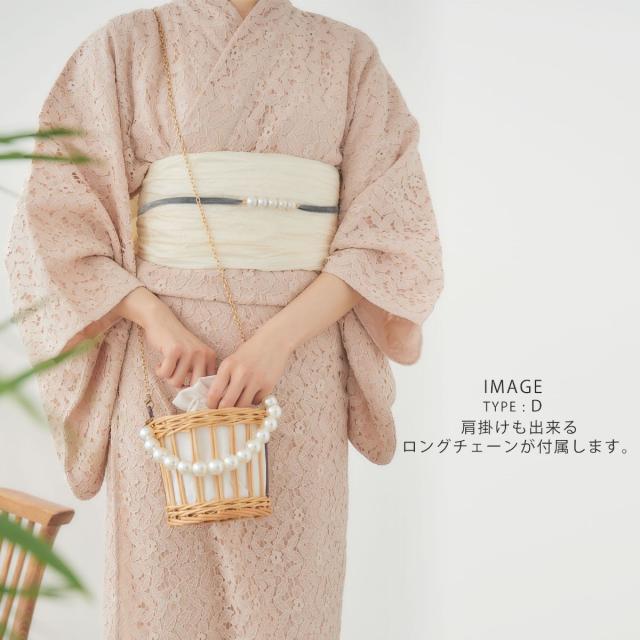 【在庫処分セール】パールとレースがかわいい かごバッグ 巾着 選べる6タイプ パールとレースがベストマッチ インナー巾着仕様 モノトーン デザイン 白 植物素材 浴衣や夏の着物に最適です。