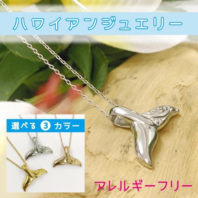 【送料無料】 レディースネックレス ハワイアンジュエリー ホエールテール 40cm 45cm サージカルステンレス ステンレスチェーン ネックレス アレルギーフリー シルバー ゴールド ピンクゴールド