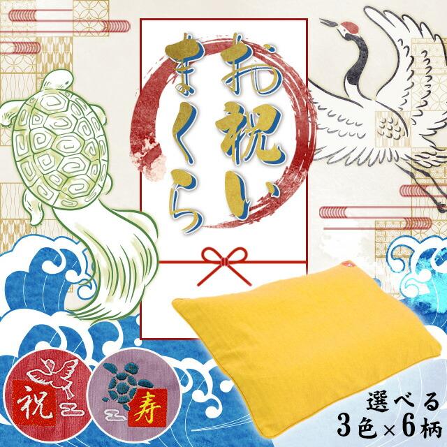 枕 肩こり お祝い枕 長寿祝い 長寿枕 約35×50cm 鶴 亀 寿 祝 選べる 3色 6柄 洗える パイプ枕 高さ調節可能 枕カバー付き 化粧箱