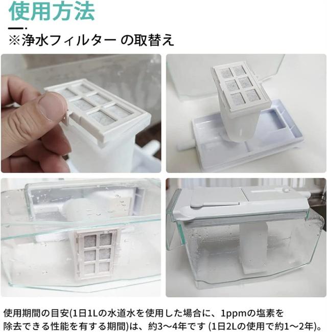 ● 浄水フィルターは定期的にお取替えください。使用期間の目安は3〜4年です。(製氷皿を取り外せる機種のみ)製氷皿のお手入れは年に1、2回程度を目安に取扱説明書に従って実施してください。