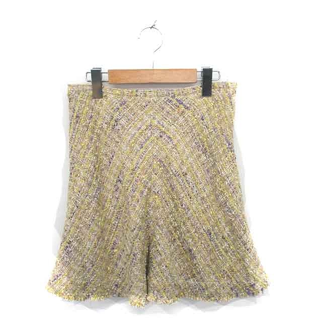 【中古】マカフィー MACPHEE トゥモローランド フレア スカート ミニ 総柄 サイドジップ 38 黄 イエロー /TT36