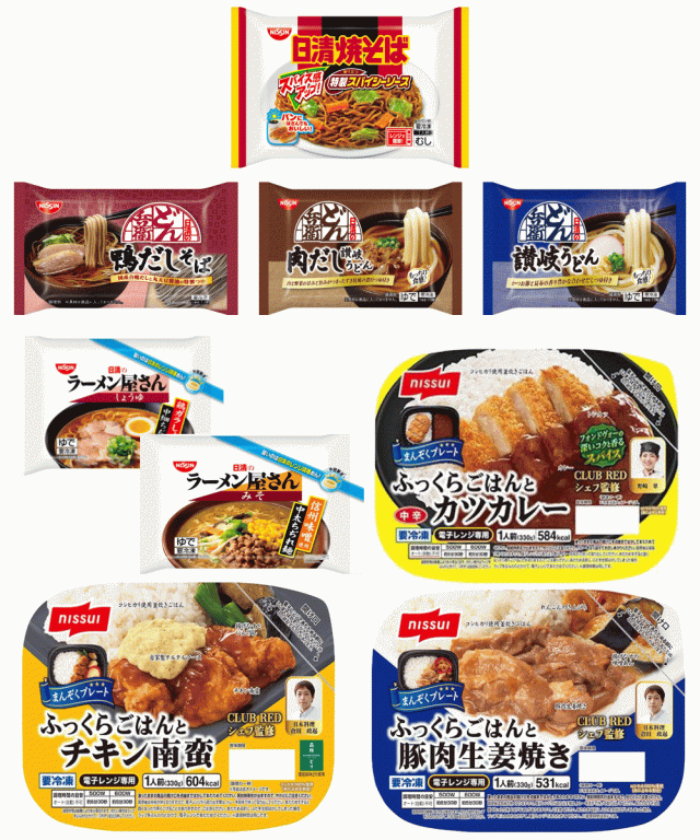 【3+6】【冷凍食品】 ニッスイ 冷凍弁当 ふっくらごはん チキン南蛮 カツカレー 豚肉生姜焼き 日清食品 冷凍麺 うどん そば 焼きそば 関東圏送料無料