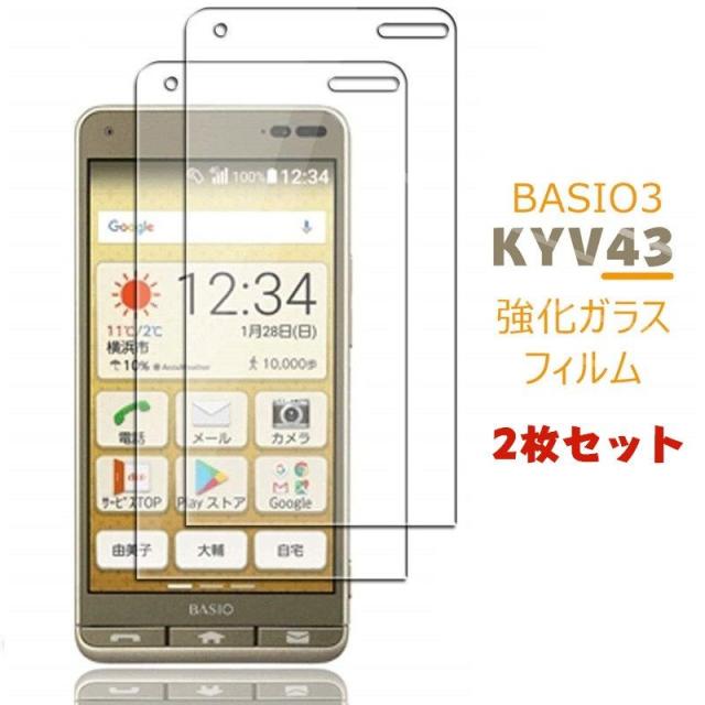 【お得な2枚セット】au BASIO3 KYV43 ガラスフィルム KYV43 強化ガラスフィルム ベイシオ3 au KYV43フィルム 指紋防止 保護シート - KYV43 用 液晶保護フィルム basio3 au kyv43 保護フィルム 保護シート 保護シール 強化ガラス