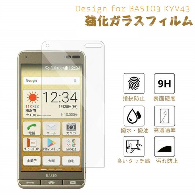 BASIO3 KYV43 ガラスフィルム basio3 au kyv43 フィルム BASIO ベイシオ 3 フィルム BASIO3フィルム ベイシオ3フィルム KYV43フィルム KYV43フィルム KYV43フィルム KYV43フィルム 2枚セット au BASIO3 KYV43 ガラスフィルム 強化ガラスフィルム 耐指紋 撥油性 硬度9H 強化 ガラス 飛散防止処理 高透過率 光沢表面仕様 画面保護 指紋防止 保護シート KYV43 用液晶保護フィルム KYV43