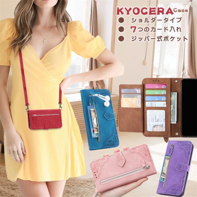 Basio4 ベイシオ4 ケース 手帳型 ショルダー 京セラ あんしんスマホ KY-51B 携帯ケース ショルダータイプ かんたんスマホ3 2+ 手帳型 スマホケース Android One S10 S9 カバー ファスナー ポケット ショルダーストラップ 花柄 液晶保護 財布型 耐衝撃 女子 おしゃれ かわいい