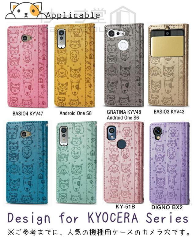 ショルダータイプ!あんしんスマホ KY-51B 京セラ ケース 手帳型 猫柄 犬柄 DIGNO BX2 Android One S10 S9 手帳型ケース かんたんスマホ 3 2+ スマホケース kyocera BASIO3 ベイシオ 4 ケース GRATINA KYV48 カバー バッグ型 おしゃれ かわいい 肩掛け ショルダーストラップ