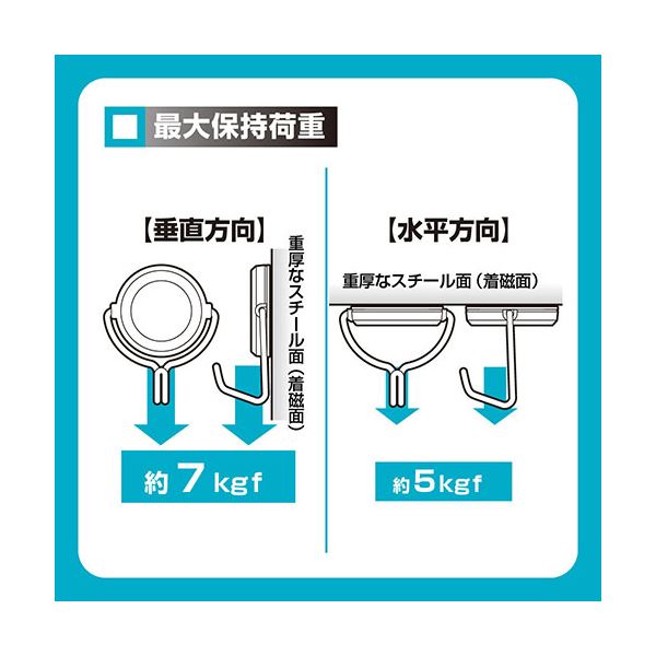 目安耐荷重:垂直方向約7kg 水平方向約5kg 磁石側に取り付け面を傷つけにくい保護シート付