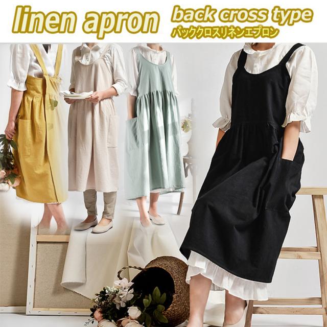 エプロン おしゃれ リネン 大人 レディース 麻 バッククロス ナチュラル ワンピース かわいい ロング丈 ワンピース エプロン