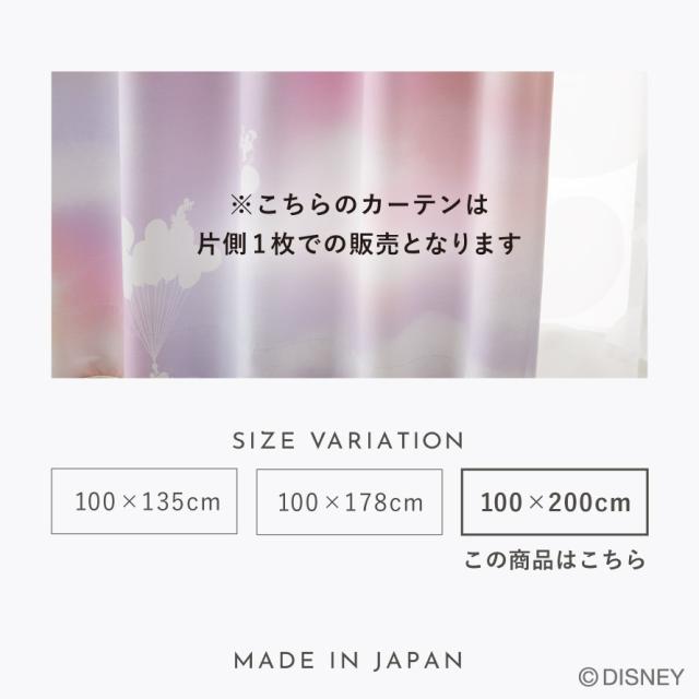 幻想的なグラデーションが美しい、ミッキーの大人可愛いドレープカーテン。ミッキーマウスと仲間たちが楽しそうに風船で空を旅している姿に癒されます。