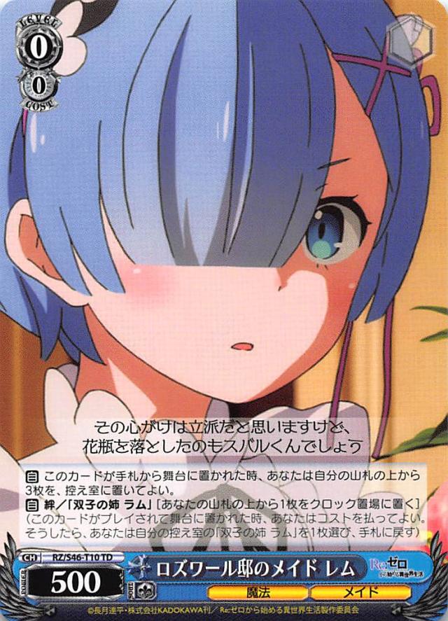ヴァイスシュヴァルツ RZ/S46-T10 ロズワール邸のメイド レム(TD)【新品】