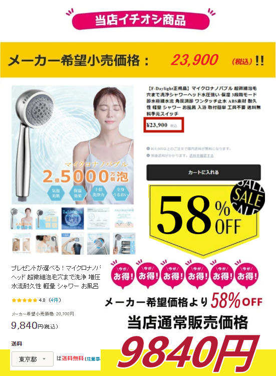 - 話題の商品大変安く買え喜んでいます。 水の勢いも良く節水効果も期待出来ると 思います。