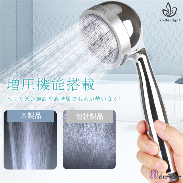 ※シャワーヘッド自体には水圧の弱いご家庭の水圧を