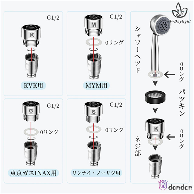 (2)付属アダプタとゴムリングと使用:MYM、KVK、東京ガス