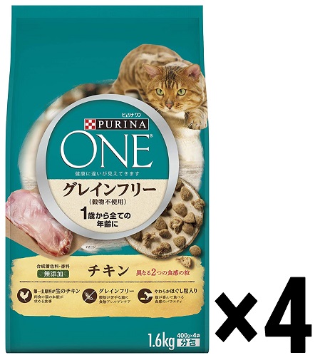 ピュリナワン グレインフリー チキン 1.6kg(400g×4袋) 1歳?全ての年齢に キャットフード 無添加×4 賞味期限2026.7